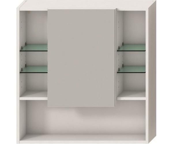 Подвесной зеркальный шкаф Jika Lyra Plus, изготовлен из влагоотталкивающего ДСП, белого цвета, матовый. Шкаф поделен на три части. Середина шкафа самая широкая, внешняя часть дверей - зеркальная, внутри шкафчика размещены, шесть стеклянных полок. В боковых частях также установлены стеклянные полки, что делает данный шкаф более функциональным.Особенности